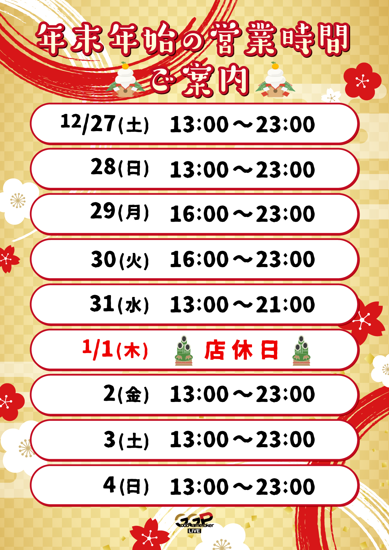 名古屋、最強店舗宣言! 全ての時間をポーカーに費やせ! 本⽇のスケジュール 17:00 Speed Racer 1k 19:00 Weekend NLH 3k 21:00 Daily Night 2k News NEWS 年末年始の営業時間のお知らせ VIEW MORE 年末年始の営業スケジュールについてのお知らせ VIEW MORE